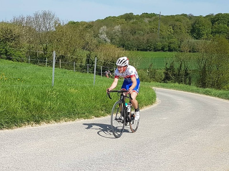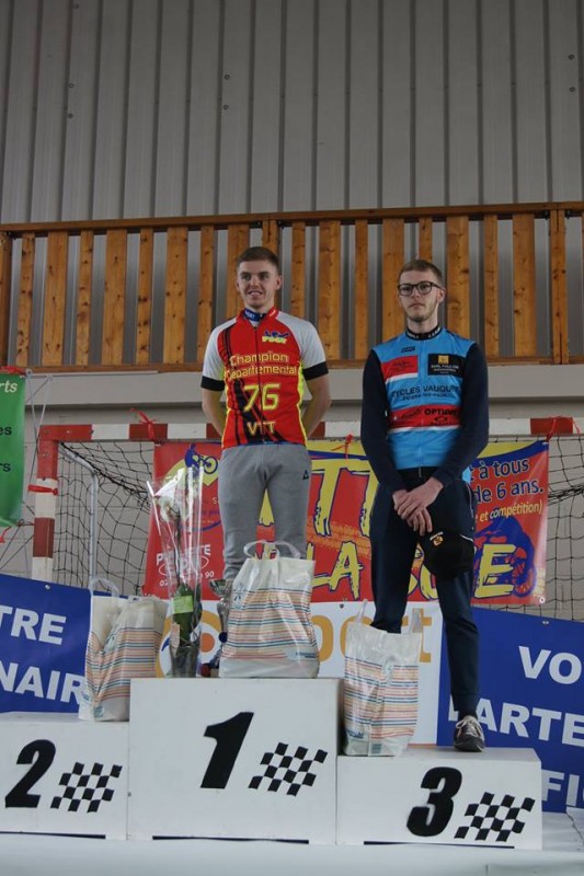 Belle place de Corentin Cabot qui termine 2° de la course scratch derrière le vainqueur Corentin Fourceaux (ES Aumale)