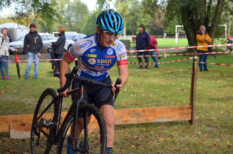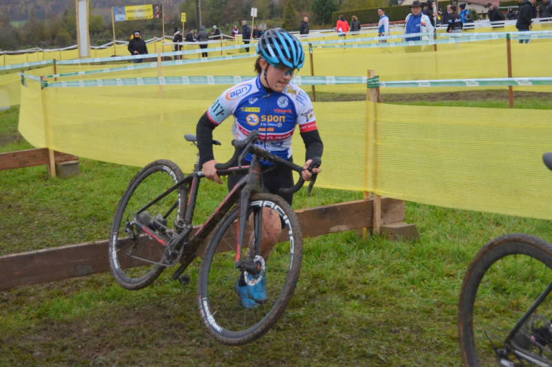 Axelle JACQUES, passée junior 1ère année, elle s'élançait avec les seniors Elites dames, dont plusieurs sont professionnelles. C'était une sacrée découverte pour Axelle. Le terrain gras et glissant, n'est pas la chose qu'elle préfère. Accrochée par une autre concurrente au départ, elle va prendre un mauvais départ et va se retrouver au premier virage dans les toutes dernières positions. Elle va néanmoins surmonter cette difficulté et reprendre des places. Vers la mi-course, elle va coincer quelque peu avant de retrouver ses sensations dans le dernier tour. Elle va prendre finalement la 18è place chez les juniors dames.