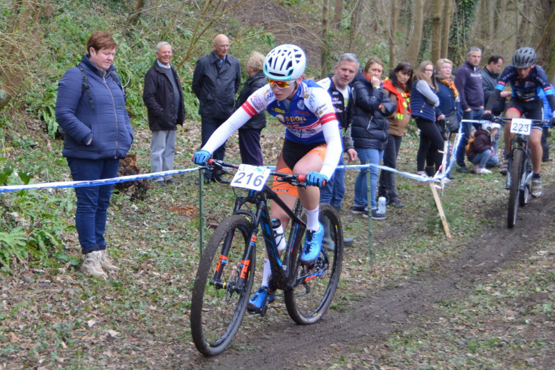 Axelle JACQUES, passée junior 1ère année, elle s'élançait avec les seniors Elites dames, dont plusieurs sont professionnelles. C'était une sacrée découverte pour Axelle. Le terrain gras et glissant, n'est pas la chose qu'elle préfère. Accrochée par une autre concurrente au départ, elle va prendre un mauvais départ et va se retrouver au premier virage dans les toutes dernières positions. Elle va néanmoins surmonter cette difficulté et reprendre des places. Vers la mi-course, elle va coincer quelque peu avant de retrouver ses sensations dans le dernier tour. Elle va prendre finalement la 18è place chez les juniors dames.