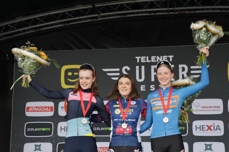 Sur la juniors dames : Lise Klaes (Team Superior) 7°, Jade Cordesse Goffette 27°