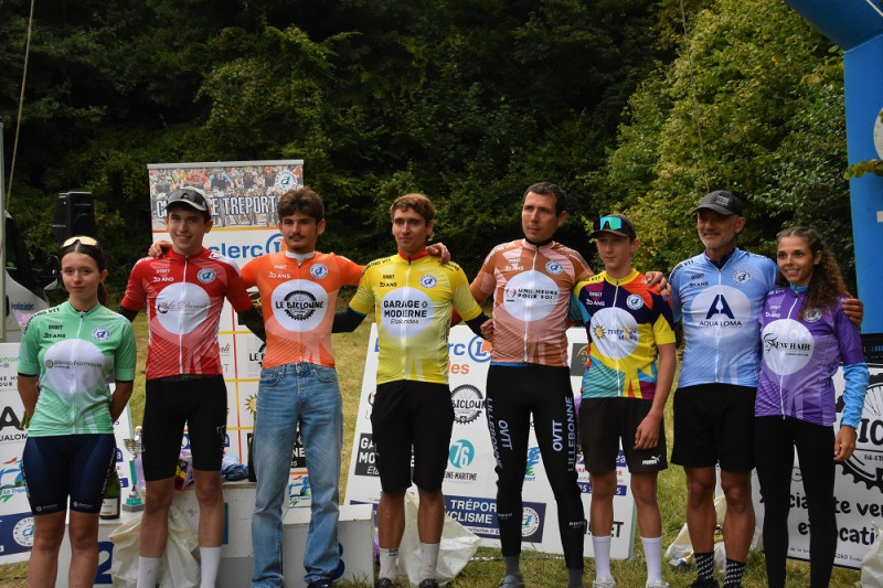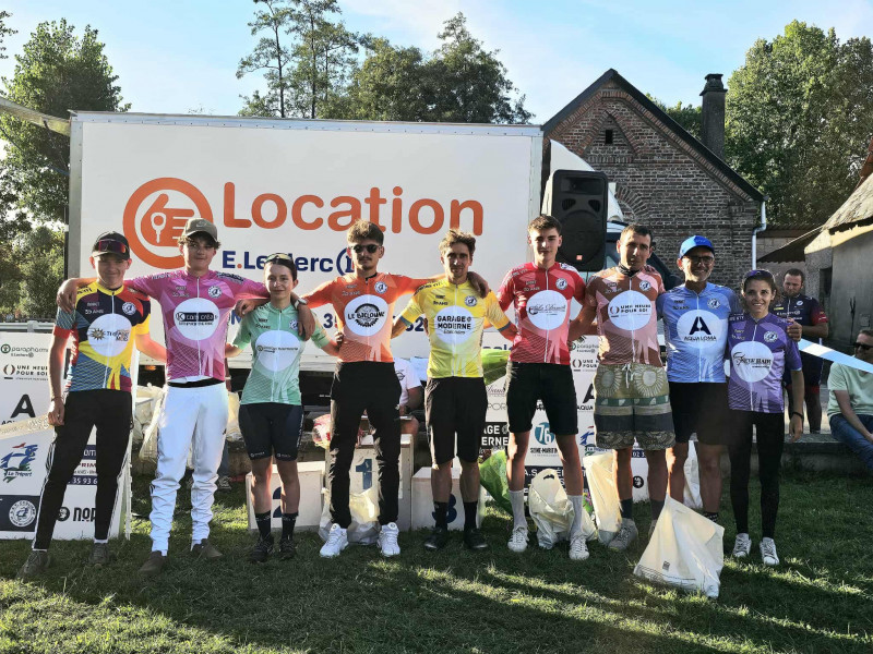 ** Nathan Jouhault (CS Gravenchon) vainqueur de la course en 1h18 (1er senior A) (leader du maillot Le Bicloune) devant Thibaud Eustache (UC Darnétal) 1er junior ( maillot Le Damali) et Arthur Kaufmann (EC Chateau Thierry) 2ème junior, 4ème Charles Hedde (ES Aumale), 5ème Martin Freullet (VTT de la Scie)