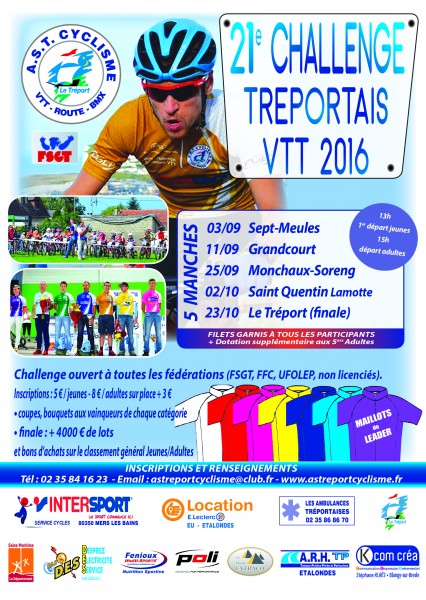 03 septembre, 11 septembre, 25 septembre, 02 octobre, 23 octobre : Challenge Tréportais VTT